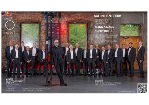 "Im Rahmen der Aktion „Auf in den Chor“ des Chorverbands Vorarlberg öffnen Chöre vom 29. September bis zum 5. Oktober ihre Proben für die Öffentlichkeit, um Interessierten einen Einblick in ihre Aktivitäten zu geben sie für den Gesang zu begeistern und neue Mitglieder zu gewinnen. Der Dornbirner Männerchor MANN O MANN freut sich über die Teilnahme und heißt alle potenziellen Sänger herzlich willkommen, die vorbeikommen, zuhören und vielleicht auch mitsingen möchten.