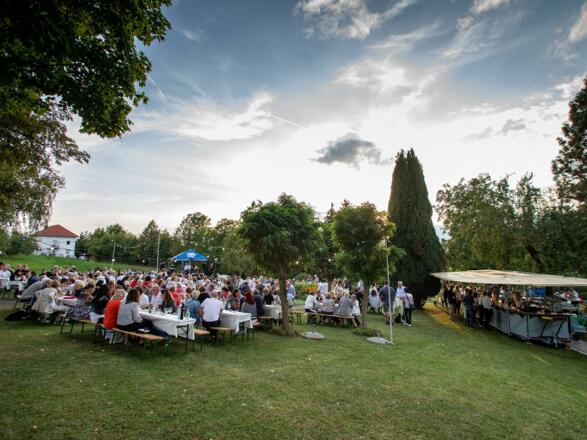 Auch der Ort passt perfekt dazu: grüne Wiesen, schattige Bäume und ein gepflegter Park schaffen Raum zum Entspannen und Zuhören. Für den kleinen oder großen Hunger sorgen Grillspezialitäten, Backhenderlsalat und Mehlspeisen aus der Region. Erfrischende Getränke gibt’s an der Bar.