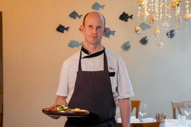 Gašper Kordež ist bekannt als stiller Perfektionist. Im charmanten Fischrestaurant Tabor setzt er gemeinsam mit Gastgeberin Mateja Markič auf kompromisslose Qualität und ehrliches Handwerk.