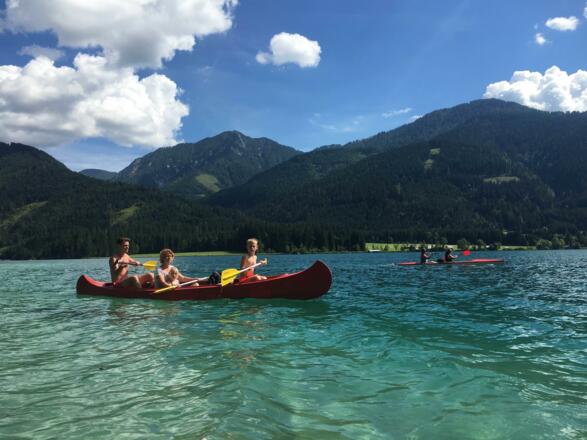 Seewandern mit Kanu. Nach einer kurzen Einführung erleben Sie den Weissensee fast hautnah, Natur und Abenteuer in einem.