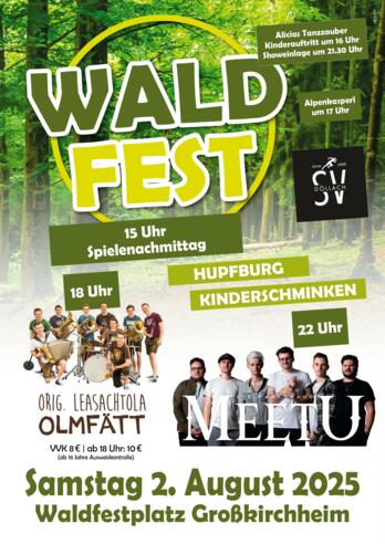 Das alljährliche Waldfest des Sportvereins Döllach findet am Samstag, dem 2. August 2025, statt und bietet ein abwechslungsreiches Programm für Groß und Klein.