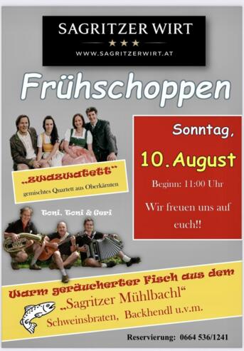 Frühschoppen beim Sagritzerwirt – Sonntag, 10. August ab 11:00 Uhr