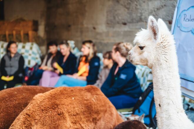 Inmitten von Weinbergen und Alpakawiesen findet zwischen den flauschigen Alpakas ein besonderes Seminarwochenende der Kunst des Innehaltens statt.