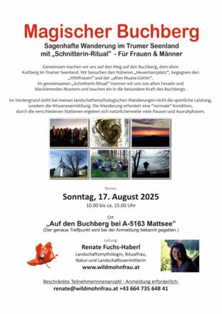 Im gemeinsamen "Schnitterin-Ritual" trennen wir uns von alten Fesseln und blockierenden Mustern und tauchen ein in die besondere Kraft des Buchbergs.