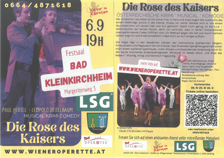 Inhalt: Der Komponist Leo Kaiser ist mit seiner Frau in Paris und muss wegen des Ausbruchs des ersten Weltkriegs zurück in die Heimat. Aber wo genau ist die? Knapp vor seiner Abreise wird er von einem Gaunerpärchen um sein Hab und Gut gebracht. Damit nicht genug, ist die k.u.k. - Geheimpolizei auf seinen Fersen, denn sie vermutet, dass in seinen Werken staatsgefährdende Codes chiffriert sind. Ein Wettlauf gegen die Zeit endet schließlich in Bad Ischl, wo sich einiges auklärt... Eigentlich ist es ja ein klassisches Happy End Finale, das die Zuschauer mitreißt, wenn da nicht die Überlegung aufkommen könnte, dass die damalige, als rosig erwartete Zukunft unsere heutige Gegenwart ist.