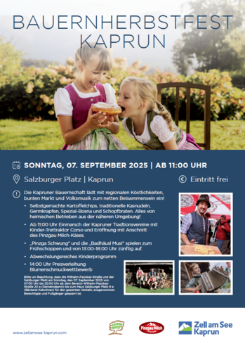 Die Kapruner Bauernschaft lädt mit regionalen Köstlichkeiten, bunten Markt und Volksmusik zum netten Beisammensein ein!