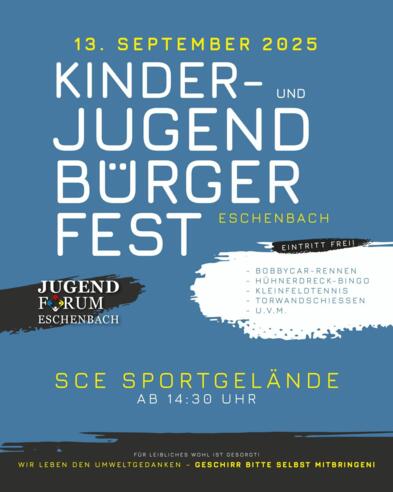 Kinder- und Jugendbürgerfest Eschenbach 2025 Wo: Sportgelände des SC EschenbachWann: 13. September ab 14:30 UhrAngebot: