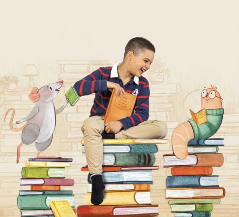 In der Ausstellung gibt es zwei lebhafte Figuren: einen Bücherwurm und eine Leseratte.