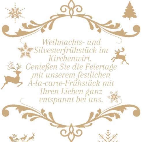 Genießen Sie ab 8:30 Uhr diesen Tag mit unserem festlichen À-la-carte-Frühstück und das mit Ihren Lieben ganz entspannt.