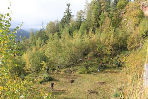 Der Glosberger Steinbruch ist eine unserer Patenflächen im Naturpark Frankenwald. Bei dieser Freiwilligenaktion wollen wir die Fläche für die dort lebenden Tiere noch attraktiver machen. Tümpel müssen freigeschnitten werden, damit die Gelbbauchunke auch im nächsten Jahr wieder vor Fressfeinden geschützt ist. Außerdem muss die Wiese gemäht werden und Neophyten, also nicht einheimische Pflanzen, müssen entfernt werden.