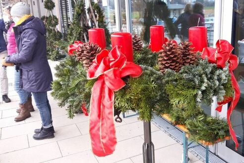 Um 14 Uhr findet eine kleine Andacht mit Segnung der gefertigten Kränze statt. Im Anschluss wird der Markt eröffnet und die Adventskränze verkauft.