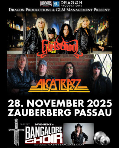 Drei Titanen des Hard Rock und Heavy Metal - Girlschool (UK), Alcatrazz (US) und David Reece (Bangalore Choir/Accept/Bonfire) - tun sich in diesem Winter für eine kraftvolle Europatournee zusammen. Mit ihrem jahrzehntelangen gemeinsamen Vermächtnis und ihrer unübertroffenen Bühnenpräsenz verspricht dieses Dreiergespann eine unvergessliche Nacht des klassischen Metal.