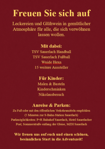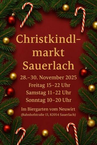 Stimmungsvoller Christkindlmarkt im Herzen von Sauerlach mit kulinarischen Schmankerln, Kunsthandwerk und einem bunten Rahmenprogramm für Groß und Klein.