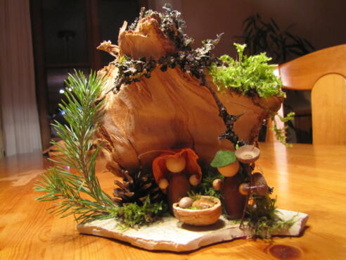- Basteln mit den Früchten des Waldes: Christbaumanhänger, kleine Kripperl