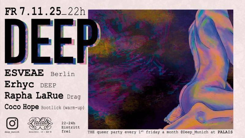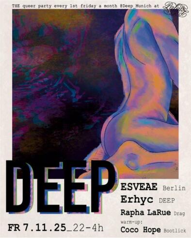 Den Lackmustest für die DEEP-Diversity absolviert im November ein ganzes Quartett, nämlich zum Warm-up am Mischpult Coco Hope, anschließend die Berlinerin ESVEAE und schließlich Gastgeber Erhyc. Als Drag-Host zeigt sich wiederum Rapha LaRue von der unterhaltsamsten Seite.