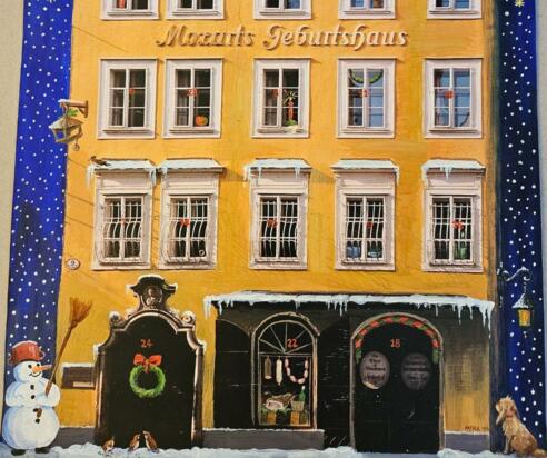 Gemütlicher Bastel-Workshop für die ganze Familie: Gemeinsam mit den Kindern einen bunten Adventkalender von Mozarts Geburtshaus basteln. Geeignet für alle Altersgruppen.