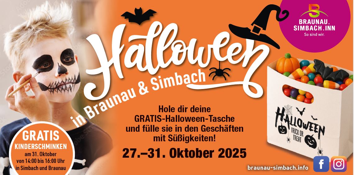 In der Zeit von 27. bis 31. Oktober 2025 findet eine grenzüberschreitende Halloween-Aktion in Braunau und Simbach statt.