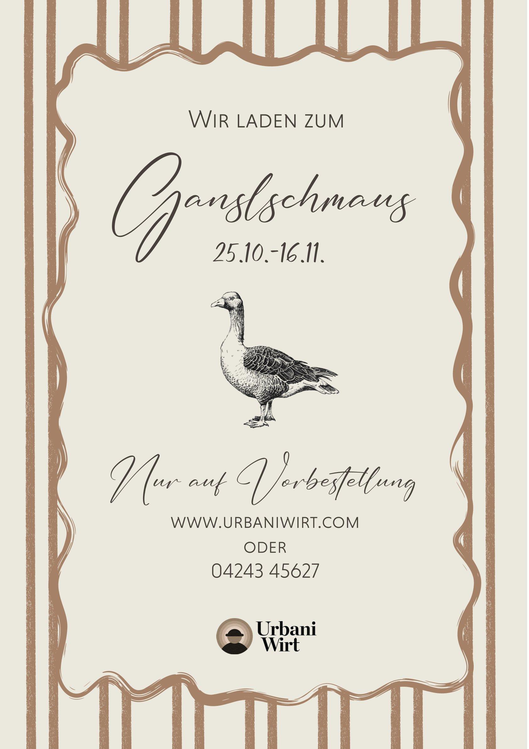 Wir laden zum Ganslschmaus von Samstag, 25. Oktober bis Sonntag, 16. November 2025.