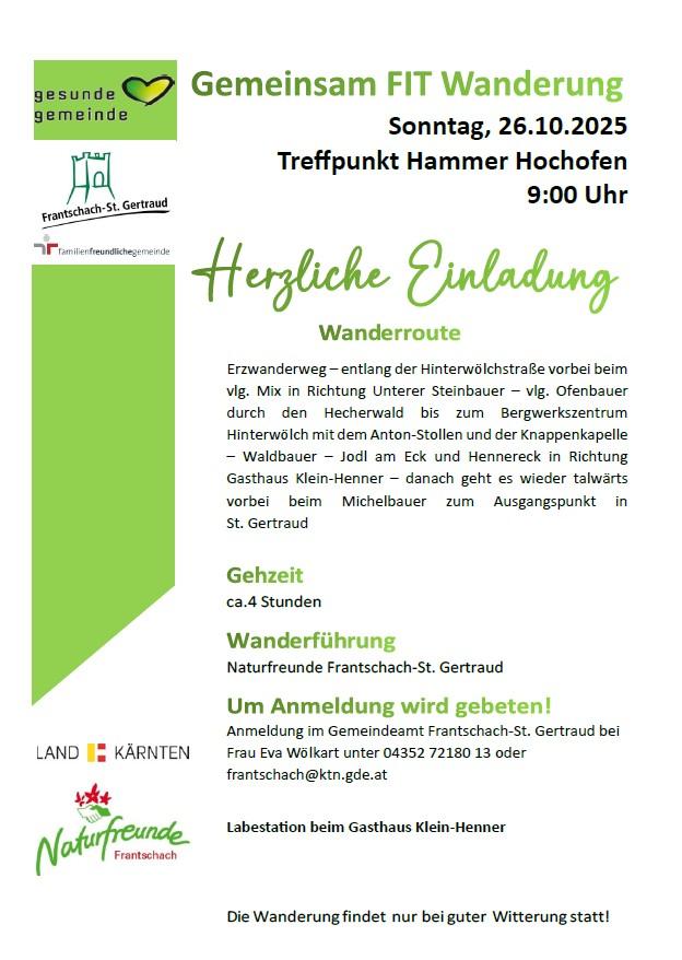 Anmeldung im Gemeindeamt Frantschach-St. Gertraud bei Frau Eva Wölkart unter 04352 72180 13 oder frantschach@ktn.gde.at