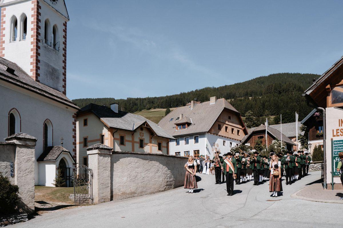 Feierlich umrahmt wird der Einzug durch die Trachten- und Schützenmusikkapelle Lessach.