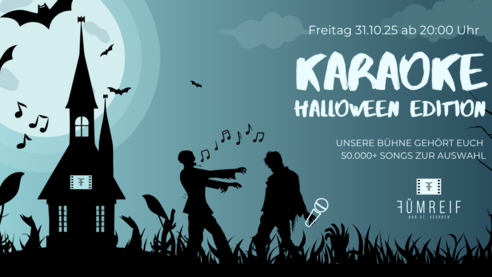 Karaoke an Halloween Macht mit bei unserer eigenen kleinen HORROR SHOW.Von 20:00 bis 04:00 Uhr gehört unsere Bühne euch!Über 50.000 Songs stehen zur Auswahl.Für alle in Verkleidung gibt’s Mutmacher-Shots zum Stimme ölen.Wir freuen uns auf einen gruslig unterhaltsamen Abend mit euch