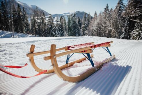 Rodeln mit anschließendem Flammlachs-Menü in der Stroblerhütte auf der Postalm.