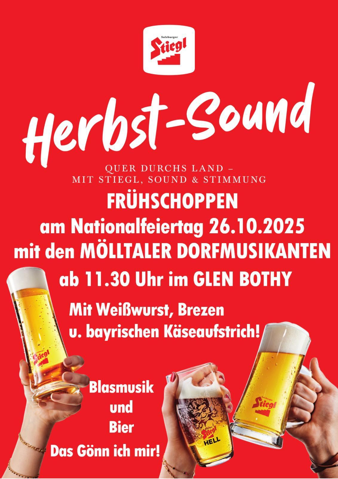 Zum "Herbst-Sound" mit Frühschoppen mit den "Mölltaler Dorfmusikanten" wird herzlich beim Glen Bothy eingeladen.