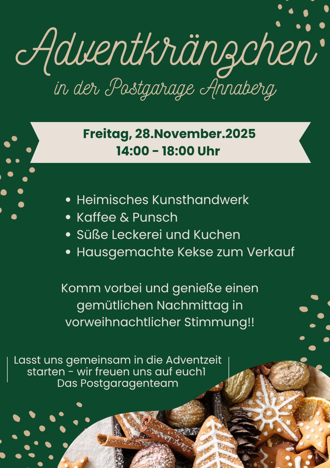 Lasst uns gemeinsam in die Adventzeit starten wir freuen uns auf euch Das Postgaragenteam
