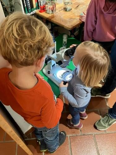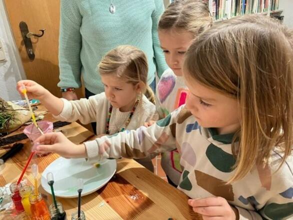 Kids von 5 bis 7 können sich nach Herzenslust bei verschiedenen Experimentierstationen austoben und in zur Thematik passenden Büchern schmökern.