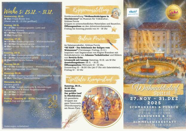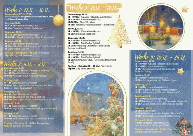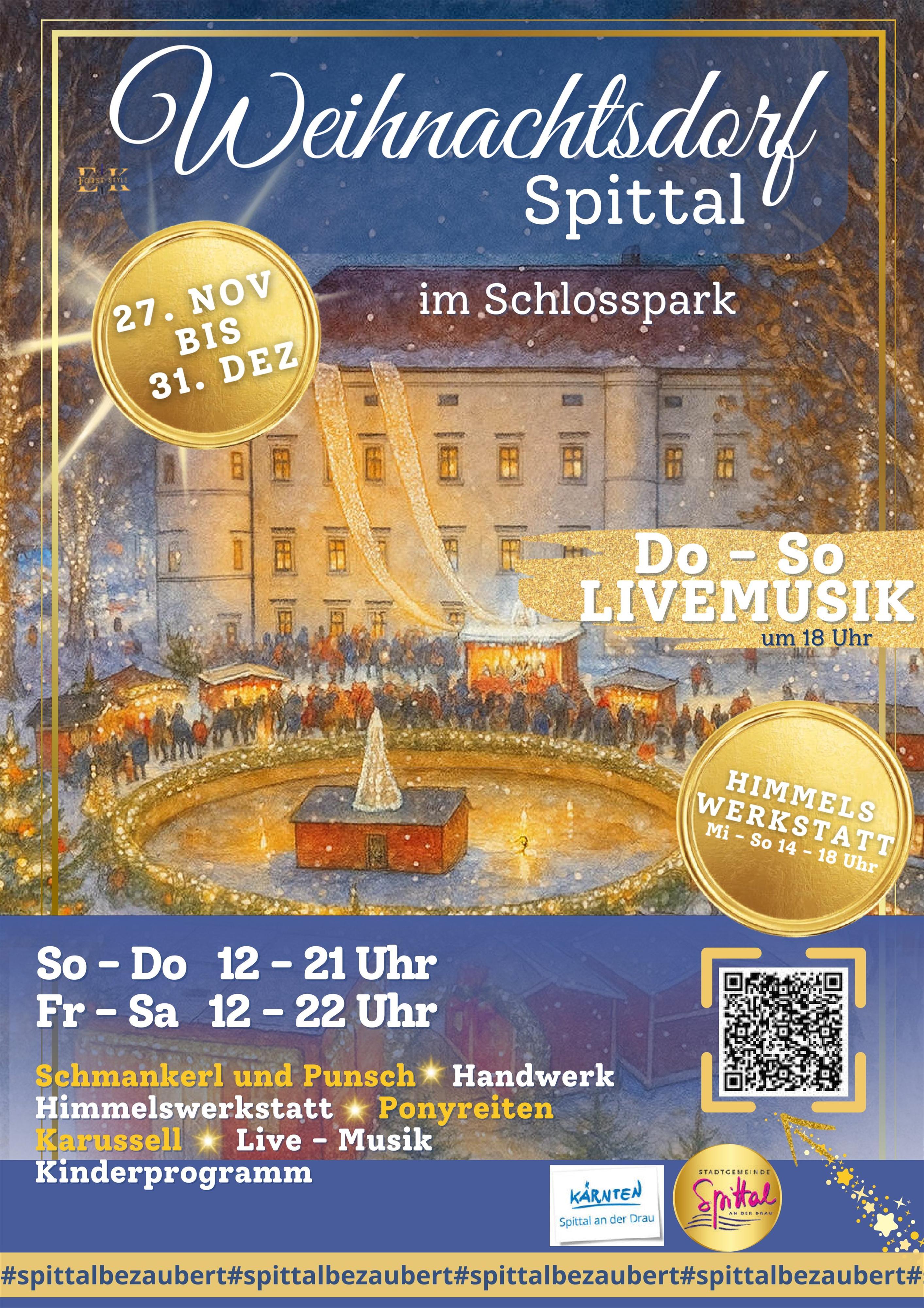 Das diesjährige Weihnachtsdorf findet vom 27. November bis zum 31. Dezember im wunderschönen Schlosspark statt. Die feierliche Eröffnung geht am 27. November um 17 Uhr mit Bürgermeister Gerhard Köfer und Live-Musik von Remo Cesare über die Bühne. Lassen Sie sich vom traumhaften Ambiente verzaubern!