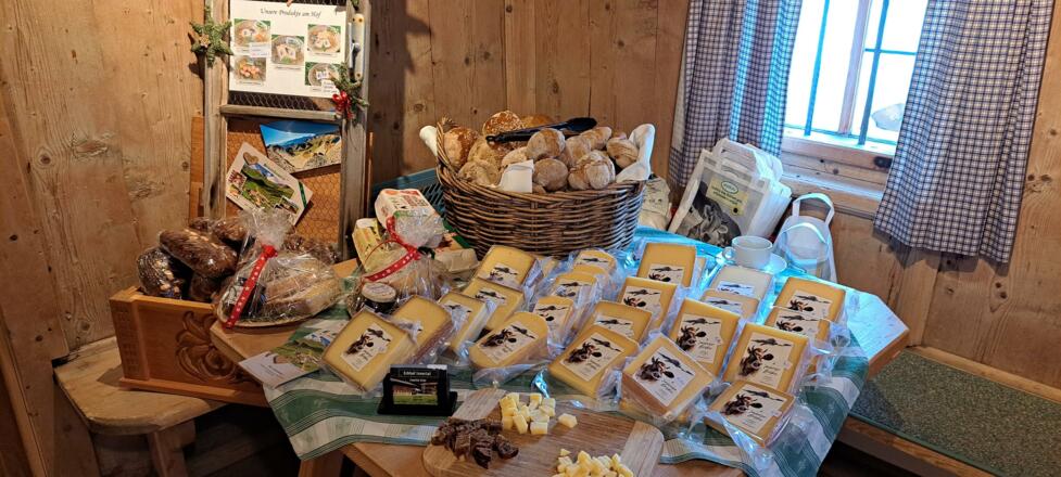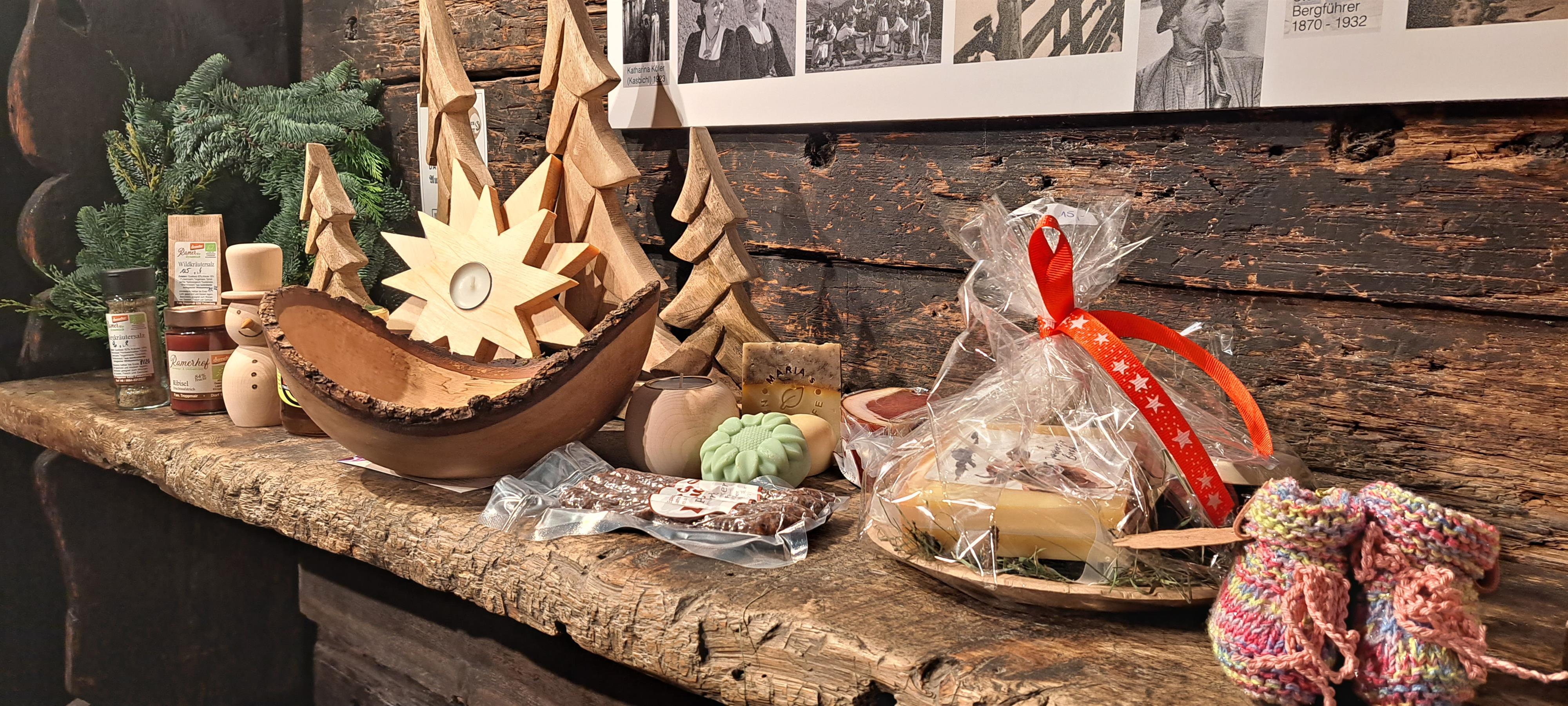 Käse, Brot, Honig, Speck, Würste, Eier, Marmeladen, Gemüse, Seifen, Handwerkskunst u.v.