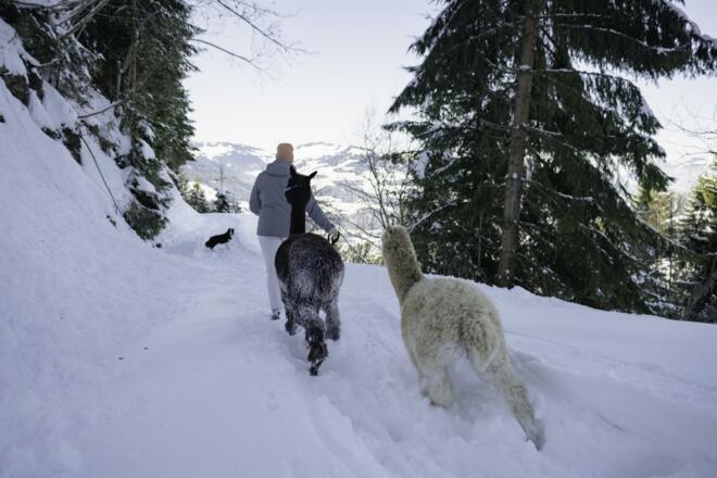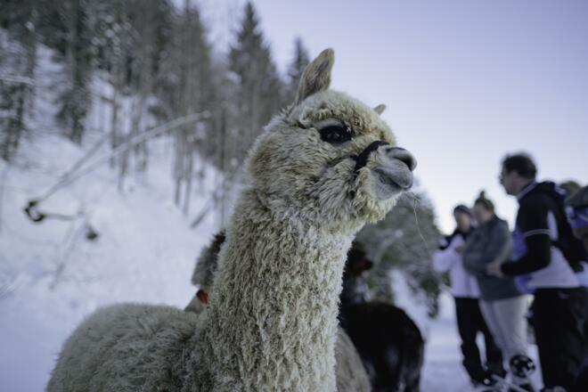 Nach einem ersten Kennenlernen der Alpakas erfahren wir viel Wissenswertes über die facettenreichen Tiere. Gemütlich und im Tempo unserer kuscheligen und friedvollen Gesellen spazieren wir durch die romantische Westendorfer Winterlandschaft.