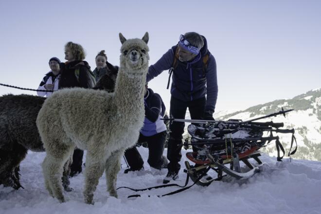 Nach einem ersten Kennenlernen der Alpakas erfahren wir viel Wissenswertes über die facettenreichen Tiere. Gemütlich und im Tempo unserer kuscheligen und friedvollen Gesellen spazieren wir durch die romantische Westendorfer Winterlandschaft.