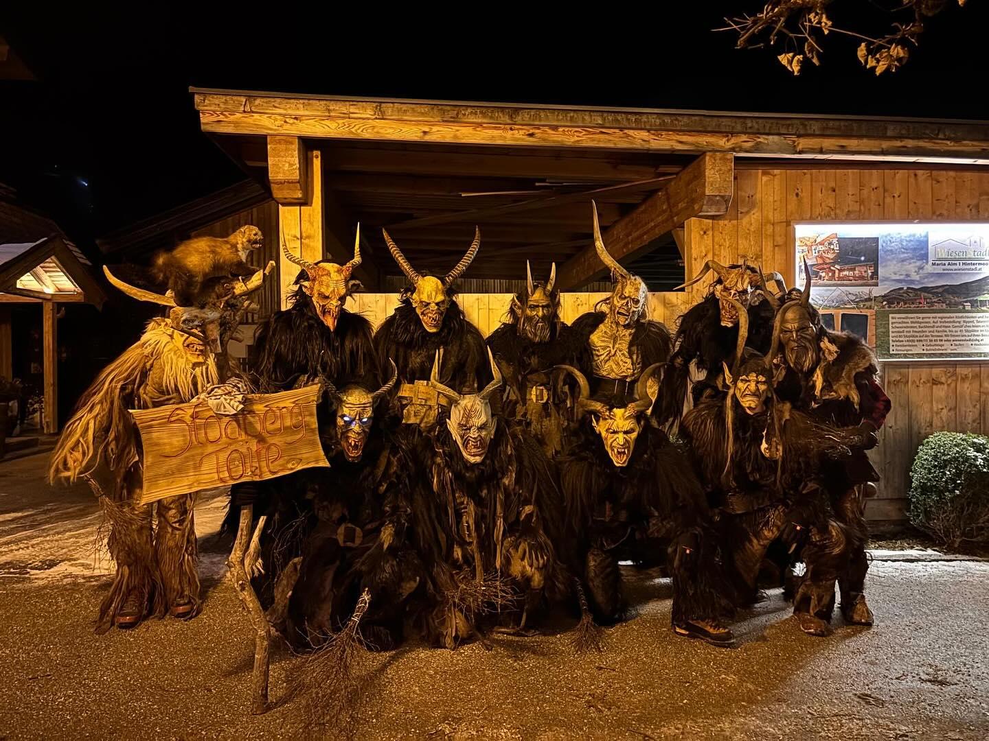 Krampuskränzchen der "Stoaberg Toife Leogang" bei der Hütten-Gaudi an der Asitzbahn in Leogang.