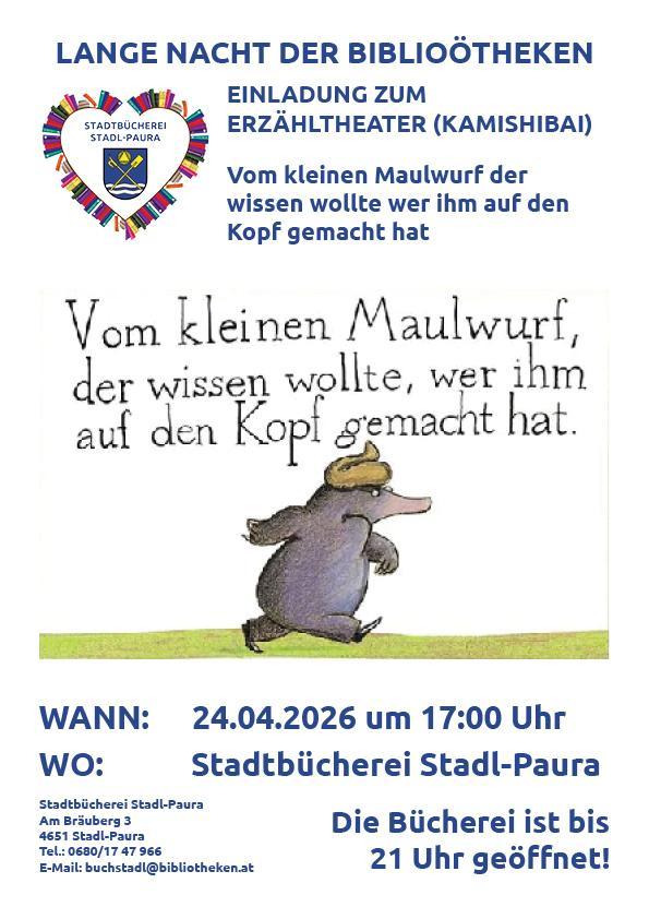 Einladung zum Erzähltheater (Kamishibai) im Zuge der LANGEN NACHT DER BIBLIOÖTHEKEN