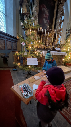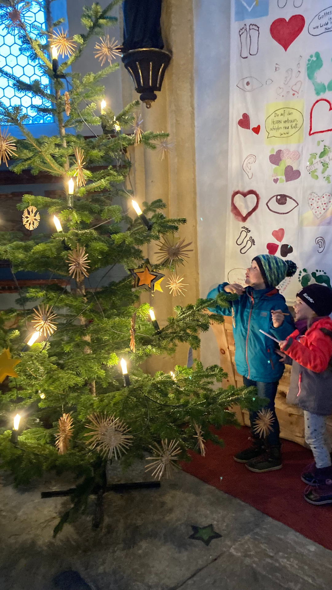 Die Stationen beginnen mit dem Bilderbuch in der Pfarrkirche, die restlichen Stationen laden zum Nachdenken, Basteln und Spielen ein. Mit einer Laterne und dem Friedenslicht ausgestattet geht es dann weiter zu den Stationen in der Filialkirche St. Augustin, wo man sich mit Maria und Josef auf den Weg zur Krippe macht.