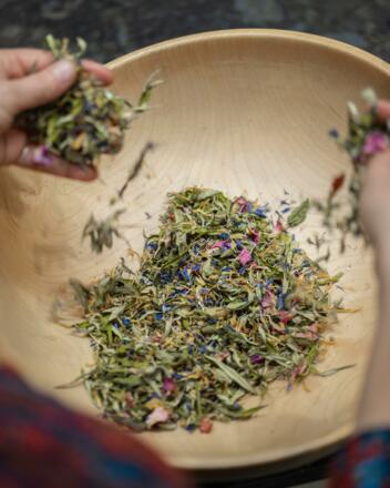 Auf der Aschingeralm am Fuße des Zahmen Kaisers erkundest Du mit Kräuterexpertin Maria die Welt der Wildpflanzen und Heilkräuter. Hier auf der Alm entfalten die Kräuter ihre besondere Kraft. Bei einer leichten Wanderung lernst Du altes Heilkräuterwissen und erfährst mehr über die Magie der Bäume und die Bedeutung des Wassers. Danach verarbeitest Du einige duftende Kräuter zu einem köstlichem grünen Kräutersalz.