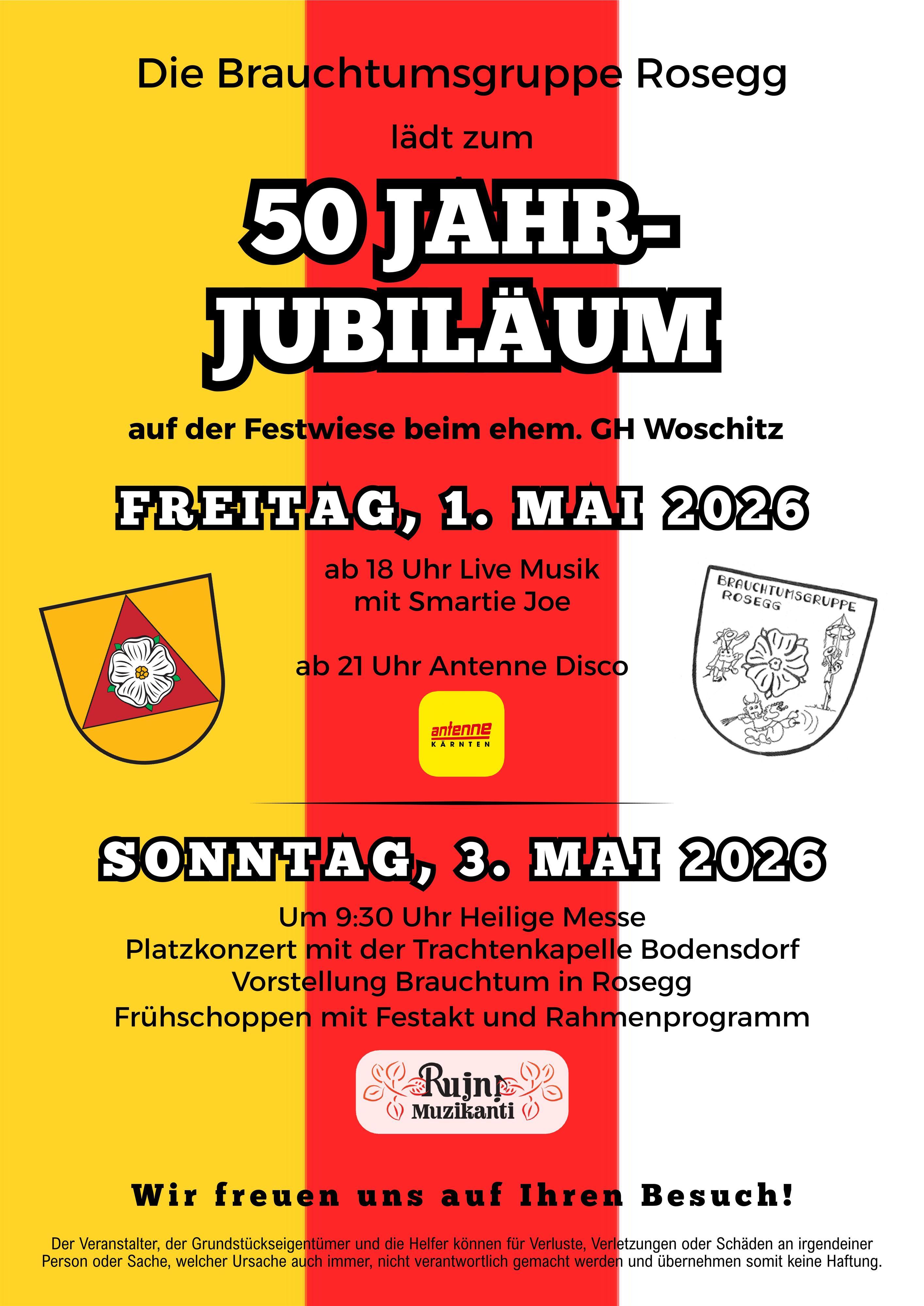Die Brauchtumsgruppe Rosegg lädt ein zu ihrem 50 Jahr-Jubiläum.