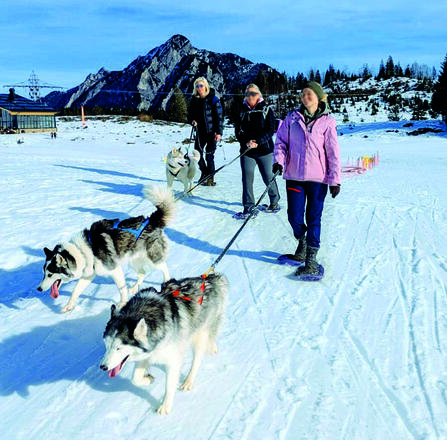 Husky-Wanderung mit Schneeschuhen