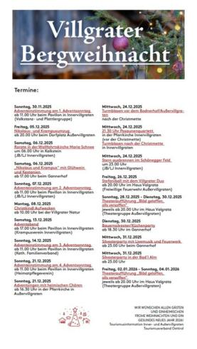 VILLGRATER BERGWEIHNACHT im Dezember in Innervillgraten