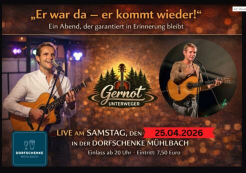 Gernot Unterweger - Live am Samstag, den 25.04.2026 in der Dorfschenke Mühlbach