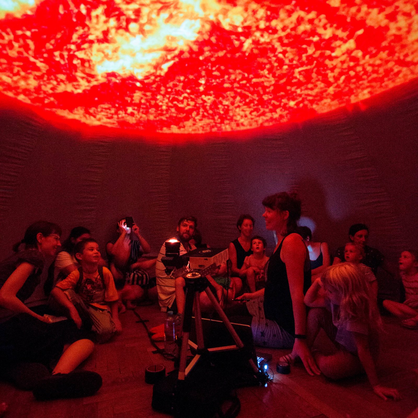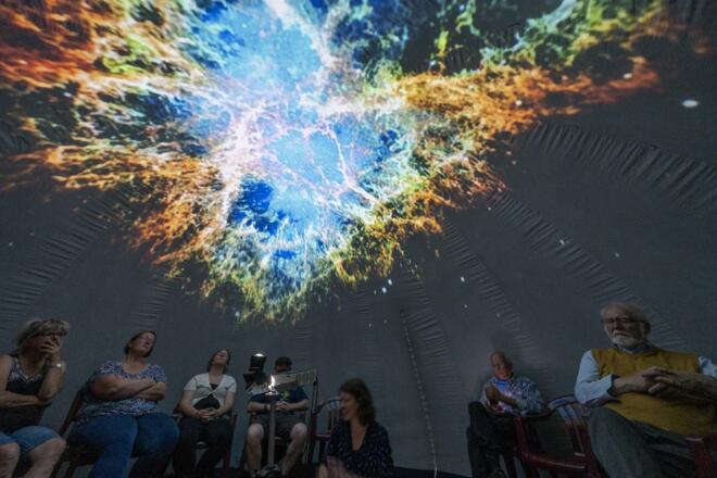 In einem mobilen Planetarium erläutert die Astronomin und Wissensvermittlerin Dr. Ruth Grützbauch spannend, was die Wissenschaft über unser Sonnensystem, die Milchstraße oder weit entfernte Galaxien weiß. Grützbauch ist Gründerin des Public Space Pop-Up-Planetariums, das bereits über 50.000 Menschen in ferne Galaxien entführt hat. Seit 2022 ist sie Mitglied des beliebten Wissenschaftskabaretts Science Busters.