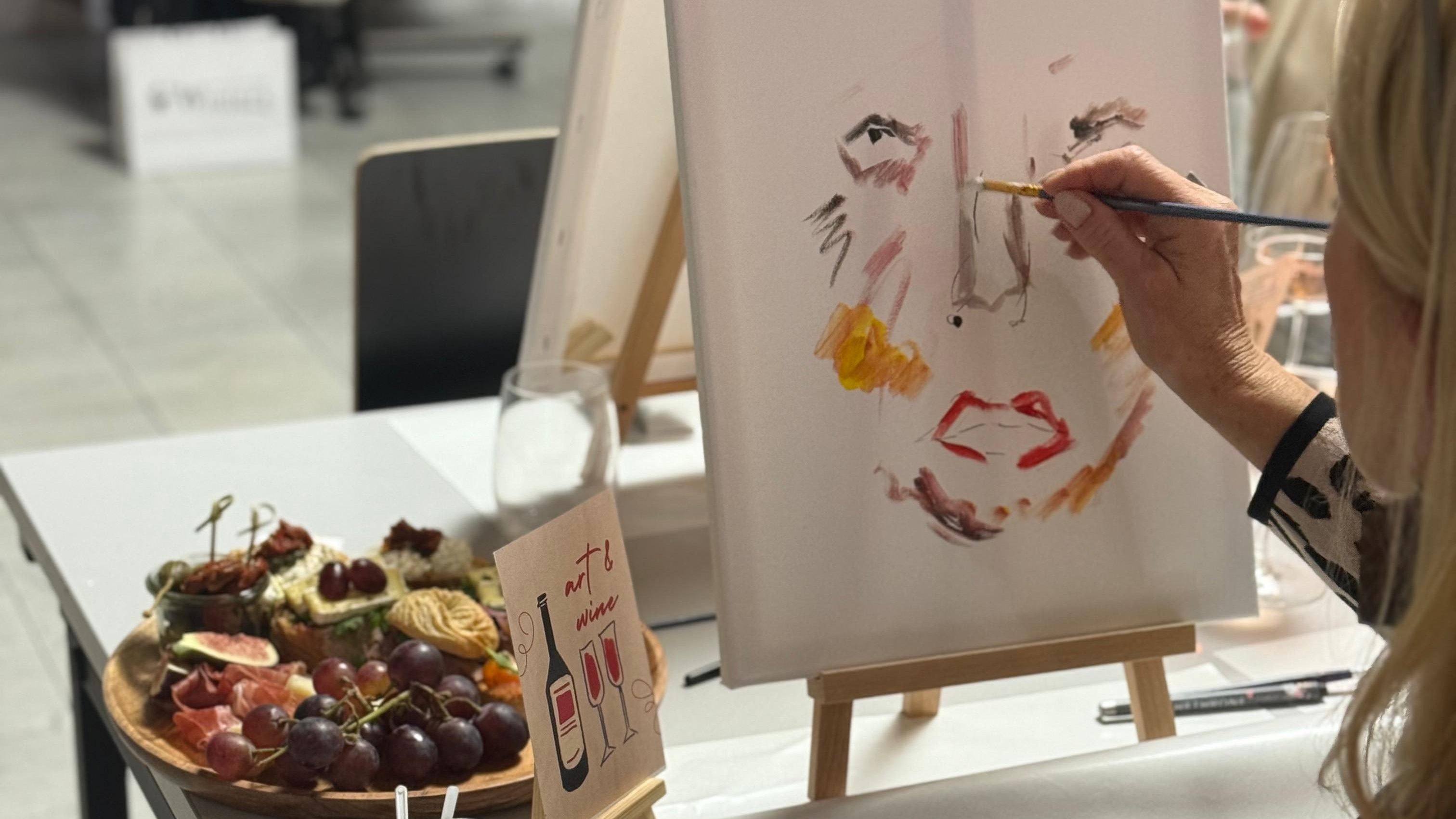 Tauche ein in die Welt der Farben, Formen und Aromen! Bei unserer Art & Wine Session mit Carmen Haugeneder erwartet dich ein entspannter Kreativ-Workshop, bei dem du nicht nur den Pinsel, sondern auch das Weinglas schwingen darfst.