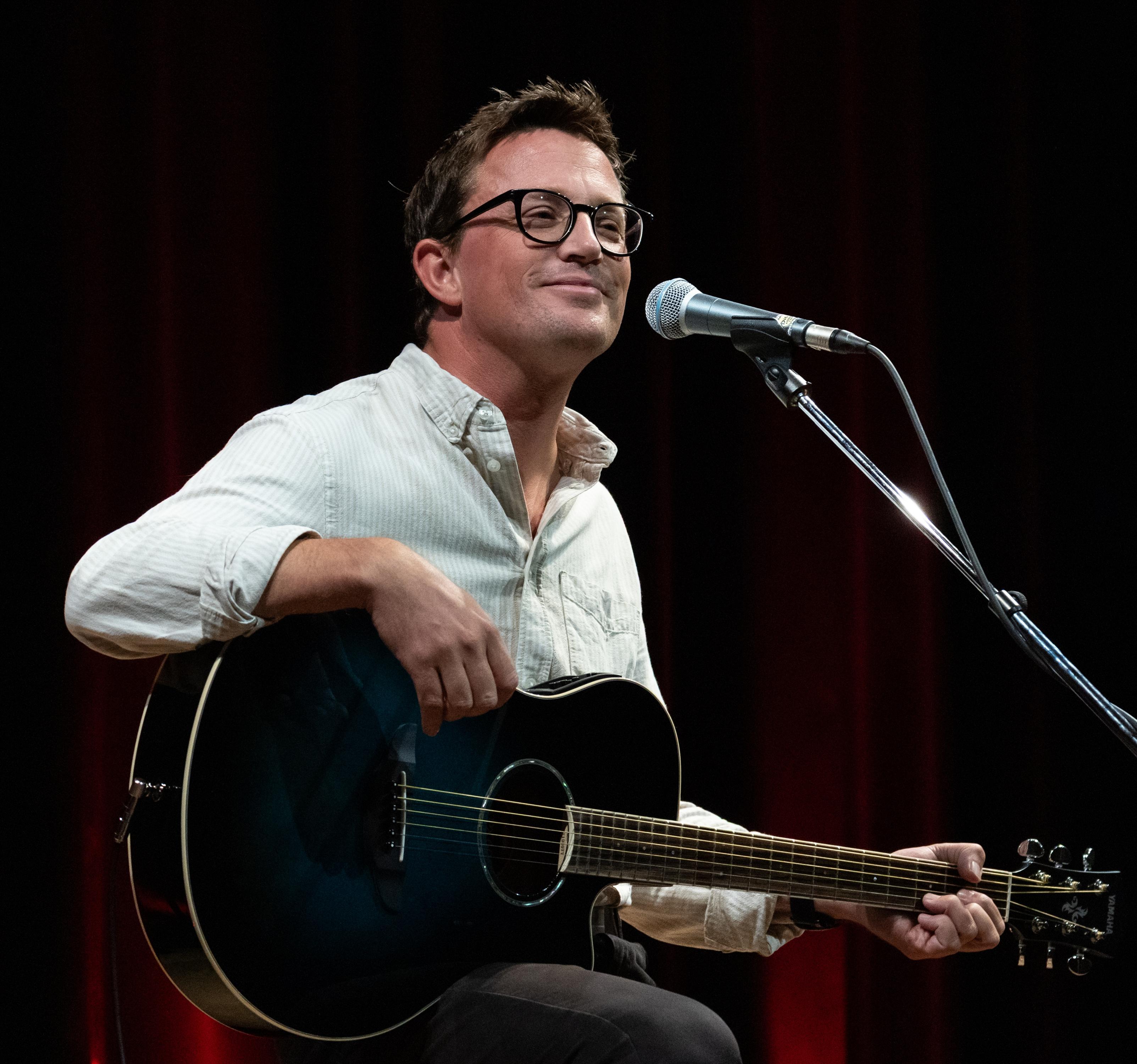 jetzt singt Stefan Moser seine eigenen Lieder. Erstmals solo, auf sich alleine gestellt, nur die Gitarre und er.