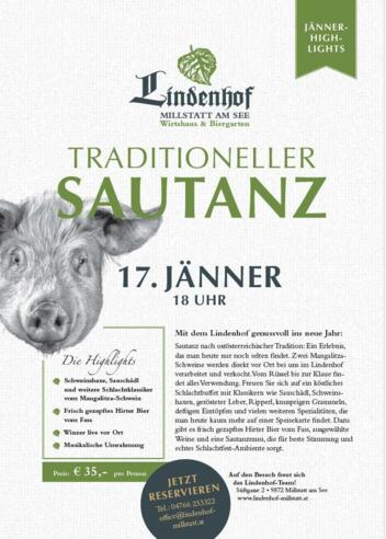 Sautanz nach ostösterreichischer Tradition: Ein Erlebnis, das man heute nur noch selten findet. Zwei Mangalitzaschweine werden direkt vor Ort bei uns im Lindenhof verarbeitet und verkocht. Vom Rüssel bis zur Klaue findet alles Verwendung.