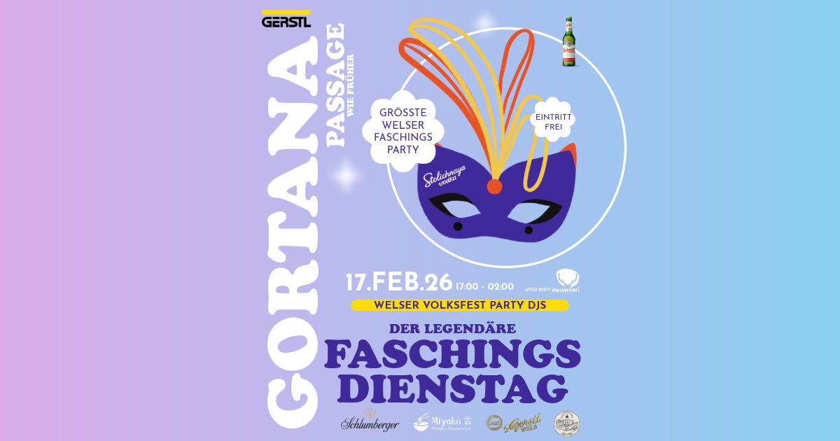 Dort geht’s weiter mit der größten Faschingsparty in Wels