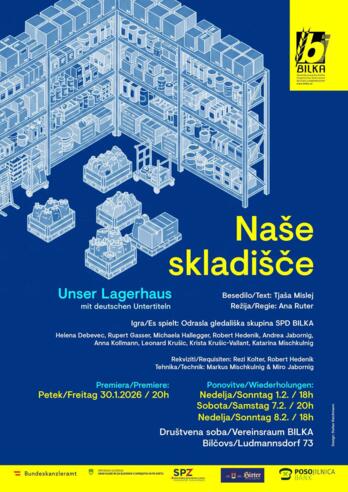 Der SPD Bilka lädt ein zur Theateraufführung „Naše skladišče - Unser Lagerhaus“ in slowenischer Sprache mit deutschen Untertiteln. Es spielt: Odrasle gledališke skupine SPD BILKA