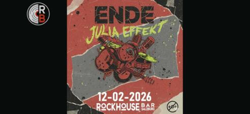 Am 12. Februar 2026 um 19:00 Uhr treten ENDE und Julia Effekt in der Bar ENDE in Österreich auf. ENDE, ein Duo aus Wien und Linz, kombiniert Post Punk, Neue Deutsche Welle, Pop und New Wave, und ihre Musik lebt von Kontrasten zwischen Härte und Zerbrechlichkeit. Live wird aus dem Duo eine vierköpfige Band, die mit intensiven Konzerten begeistert. Ihre Songs handeln von kaputten Beziehungen und versteckten Fluchten. Julia Effekt definiert Post Punk mit dissonanten Gitarren und doomiger Schwere neu. Ihre Auftritte sind kompromisslos und intensiv, mit einer düsteren Klangwelt, die nachhaltig beeindruckt. Beide Bands versprechen ein mitreißendes Musikerlebnis.
