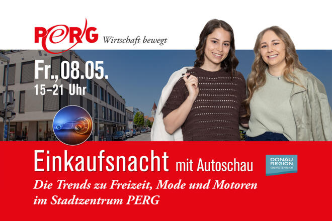 Am Freitag vor dem Muttertag findet wieder die Frühlingseinkaufsnacht statt. Viele Betriebe öffnen bis 21 Uhr und bieten besondere Shopping-Erlebnisse an. Dieses Mal präsentieren sich auch acht Autohäuser aus dem Bezirk Perg im Stadtzentrum. Bei Schönwetter werden die Gastgärten der Perger Wirte geöffnet sein, zudem kochen regionale Street-Food-Anbieter köstliche Spezialitäten.