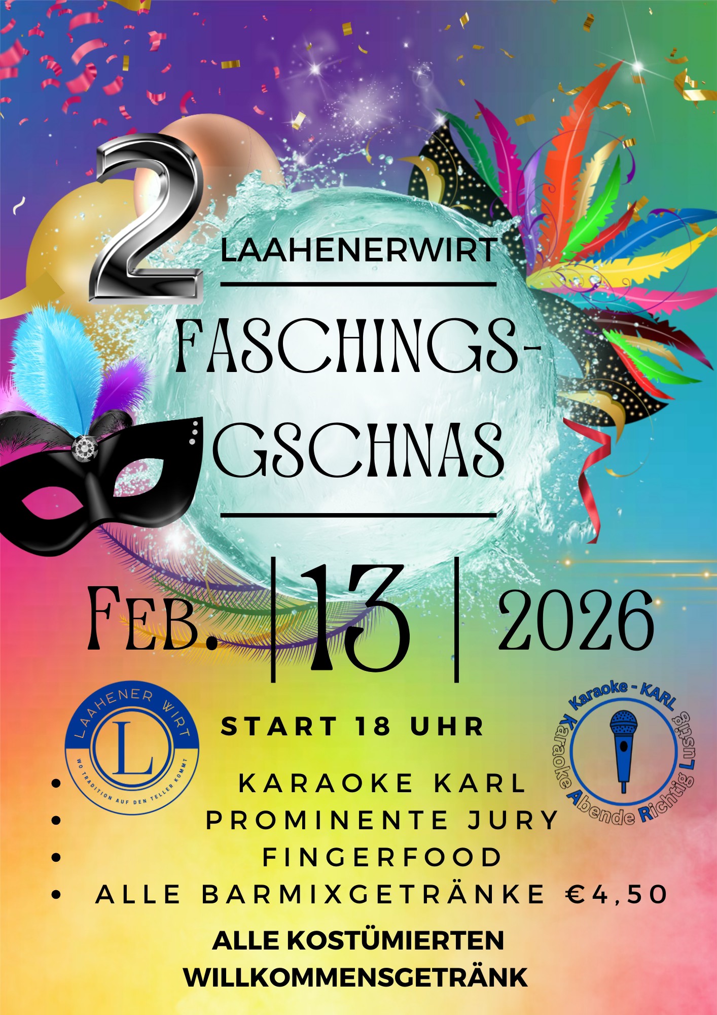 Am 13. Februar ab 18 Uhr ist es soweit. Spaß steht im Vordergrund, jeder ist willkommen! "Karaoke macht Spaß – jeder kann es!" Doch aufgepasst: Unsere gnadenlose Stammtischjury ist bereit! Wir freuen uns auf einen tollen Abend hier bei uns im Laahenerwirt!